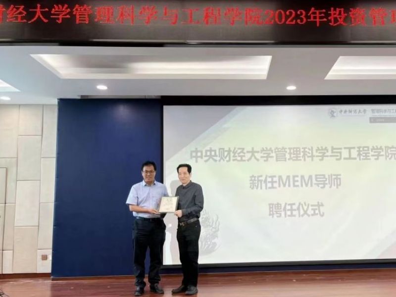2023年7月9日,“中央财经大学管理科学与工程学院2023年投资管理论坛暨MEM教育业界导师研讨会”在中央财经大学举行。中央财经大学管理科学与工程学院院长刘志东教授、MEM教育中心主任林则夫教授等学院各系、学科负责人,以及20余位来自大数据、项目管理、金融、投资等不同行业领域的学院客座教授、校友出席本次活动。深圳市广道数字技术股份有限公司董事长金文明先生受邀参加此次研讨会,并正式受聘为中央财经大学MEM专业学位研究生指导教师。