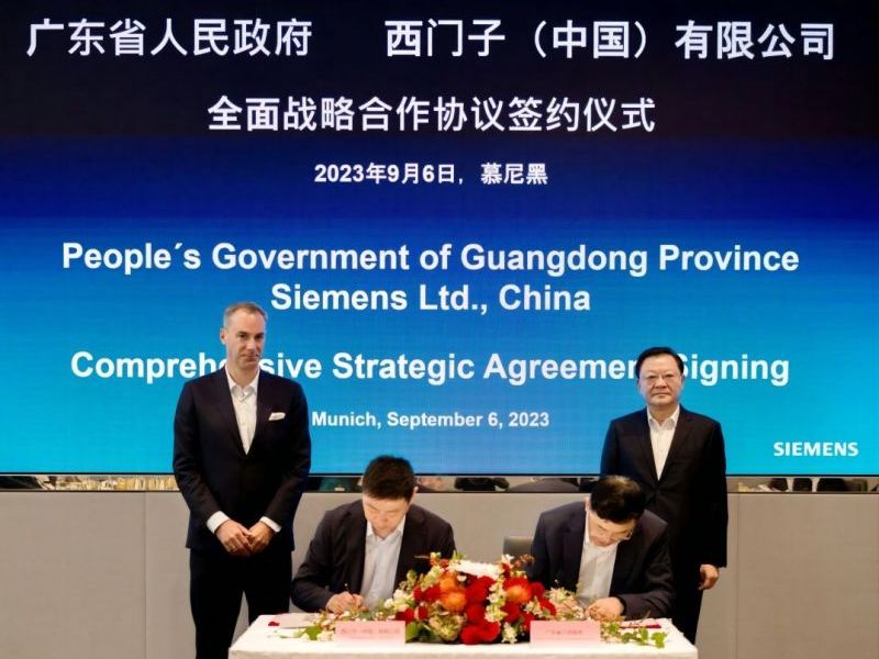 当地时间2023年9月6日,西门子与广东省王伟中到访西门子总部(慕尼黑)期间,签署全面战略合作协议,双方将在数字化、低碳化、创新研发和人才培养等领域开展全方位战略合作,助力广东省加快构建现代化产业体系,推动经济高质量发展。