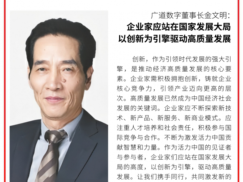 广道数字董事长金文明受邀建言全国两会:企业家应站在国家发展大局,以创新为引擎驱动高质量发展